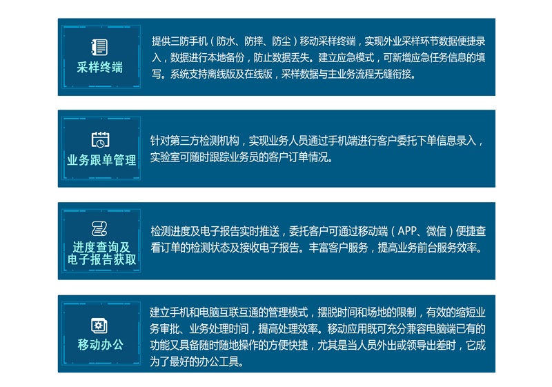 移動應(yīng)用借助了無線的技術(shù),幫助用戶真正實(shí)現(xiàn)隨時隨地傳遞信息、處理業(yè)務(wù),而完全不受時間與空間的限制。無線的優(yōu)勢正逐漸激發(fā)用戶對新應(yīng)用的需求,隨著新技術(shù)的使用及普及,移動終端(平板端及手機(jī)端)在檢驗(yàn)檢測行業(yè)也得到越來越廣泛的應(yīng)用。
